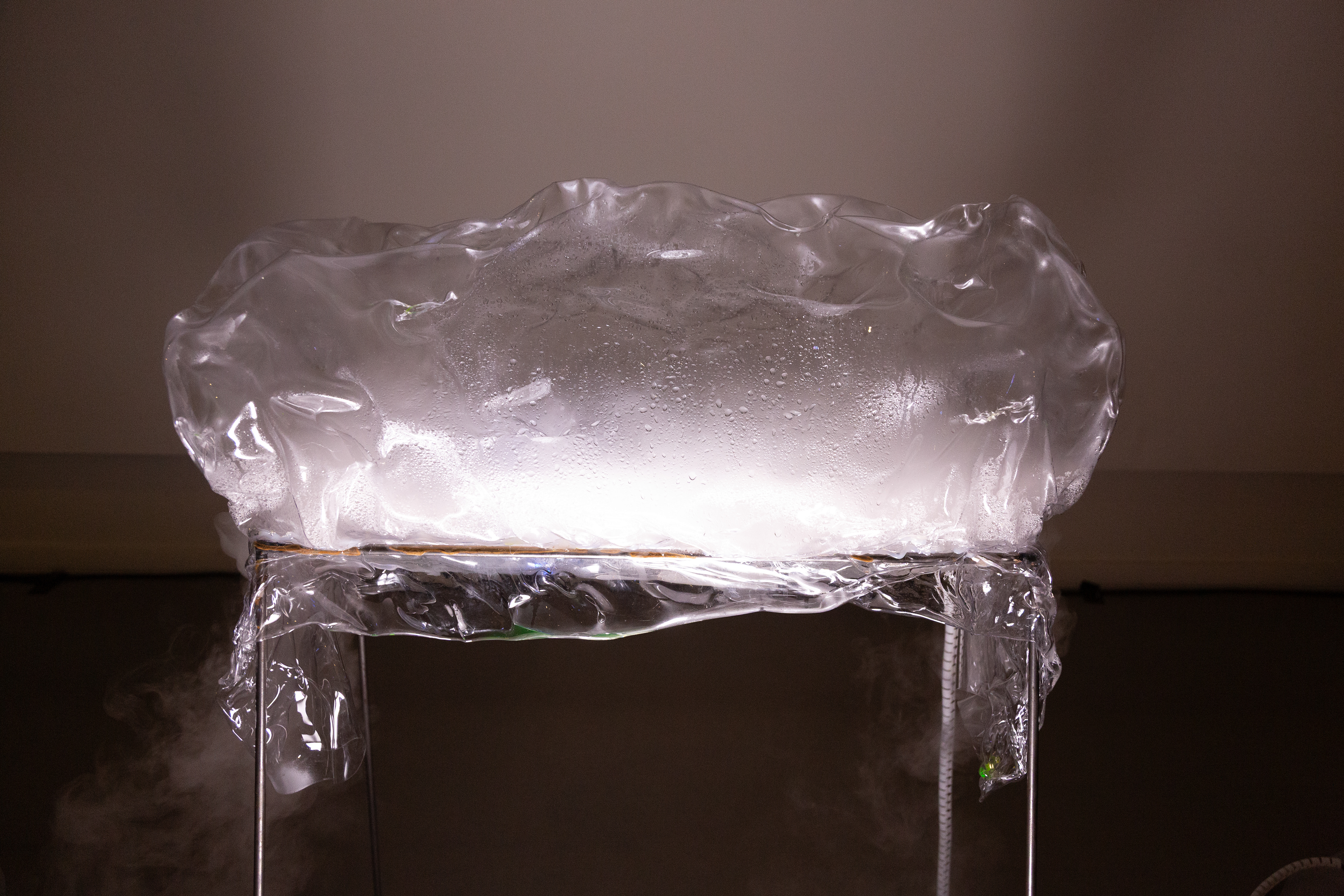 The sculpture incorporates atmospheric phenomena such as rain, whose droplets act as seeds of randomness that trigger shared rhythmic and visual processes, echoing theories of complex systems and meteorological unpredictability (Prigogine & Stengers, 1984; Ingold, 2015). The emergent cadence arises from intra-actions between human performers and non-human agents within a meteorological ecosystem that fluctuates between sustained calm and extreme agitation (Haraway, 2016; Latour, 2014; Oliveros, 2010). In this dialogue, non-human elements seek to express themselves through spontaneity and an embrace of uncertainty as the threshold of change (Stengers, 2015). Through quantum listening (Oliveros, 2010) perception becomes an expanded relational field where attention, environment, and vibration co-shape each other.